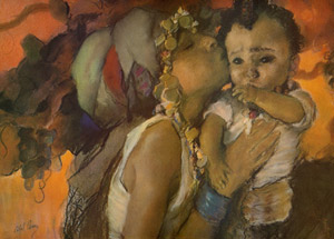 המקרא בדרך כלל אינו מציין רגשות, ועל כן האמירה: "ורבקה אהבת את יעקב" היא אמירה מקראית דרמטית. אבל פן לוקח משפט זה ומבטא אותו בעוצמה רגשית רבה. אהבת רבקה ליעקב ניכרת משפת הגוף שלה: גופה נוטה לכיוונו של יעקב, ראשה מוטה לאחור ועיניה עצומות. האור דרמטי והצבעים חמים ואינטימיים. אל האסופה ציורי התנ"ך של אבל פן3