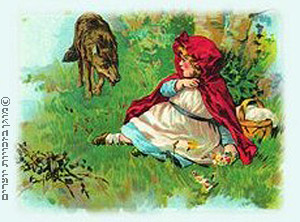 האחים יקוב ווילהלם גְרִים פעלו בגרמניה במחצית הראשונה של המאה ה- 19 וליקטו מעשיות וסיפורי עם עתיקים שיש בהם מוסר השכל. פעילות זו נעשתה כדי להחיות את המורשת התרבותית והלאומית של העם הגרמני. במרכז התמונה מפגש של ילדה קטנה, היא "כיפה אדומה", עם זאב ביער עָבוֹת. המעשייה מעלה כמה ערכים חשובים ובהם ערך המשפחה – כיפה אדומה הולכת לבקר ולסעוד את סָבָתָהּ החולה; חובת הציות להורים – הזאב תקף את כיפה אדומה כי לא צייתה להוראות אִמהּ וסטתה מן הדרך.