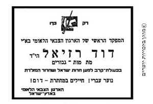 מודעת אבל שפרסם האצ"ל על מותו של מפקד הארגון